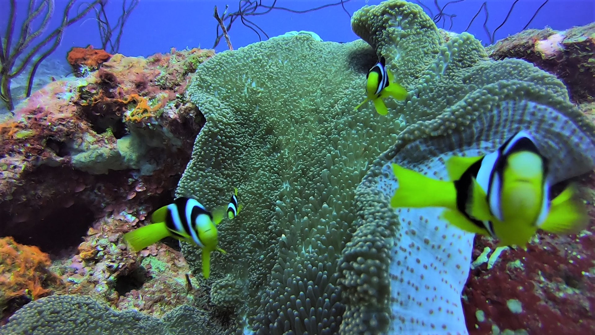 Poissons-clowns curieux
