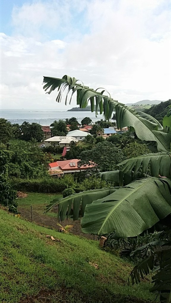 Ainsi, pour les premiers jours en compagnie des parents d’Antoine (déjà sur place à notre arrivée) nous logeons à Trinité. La location située dans les hauteurs offre une jolie vue sur la mer 🙂 Nous sommes accueillis par les moucherons yen-yen et les moustiques, on a fait mieux en matière d’accueil mais c’est le prix à payer pour vivre au soleil toute l’année.
