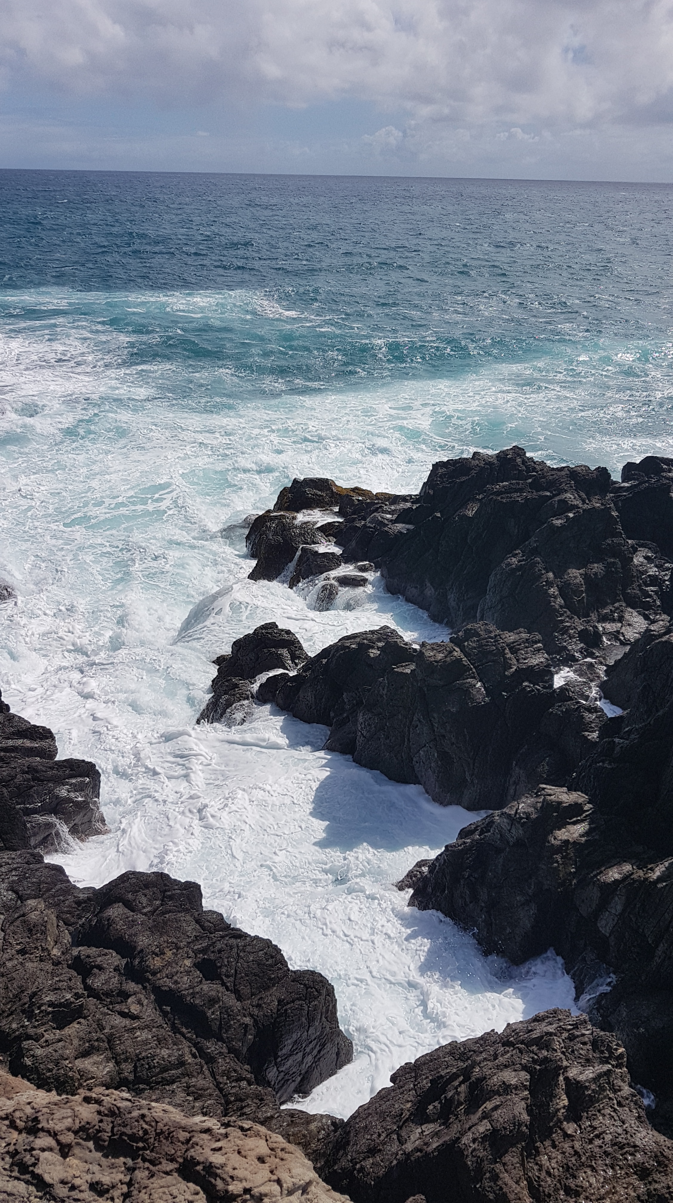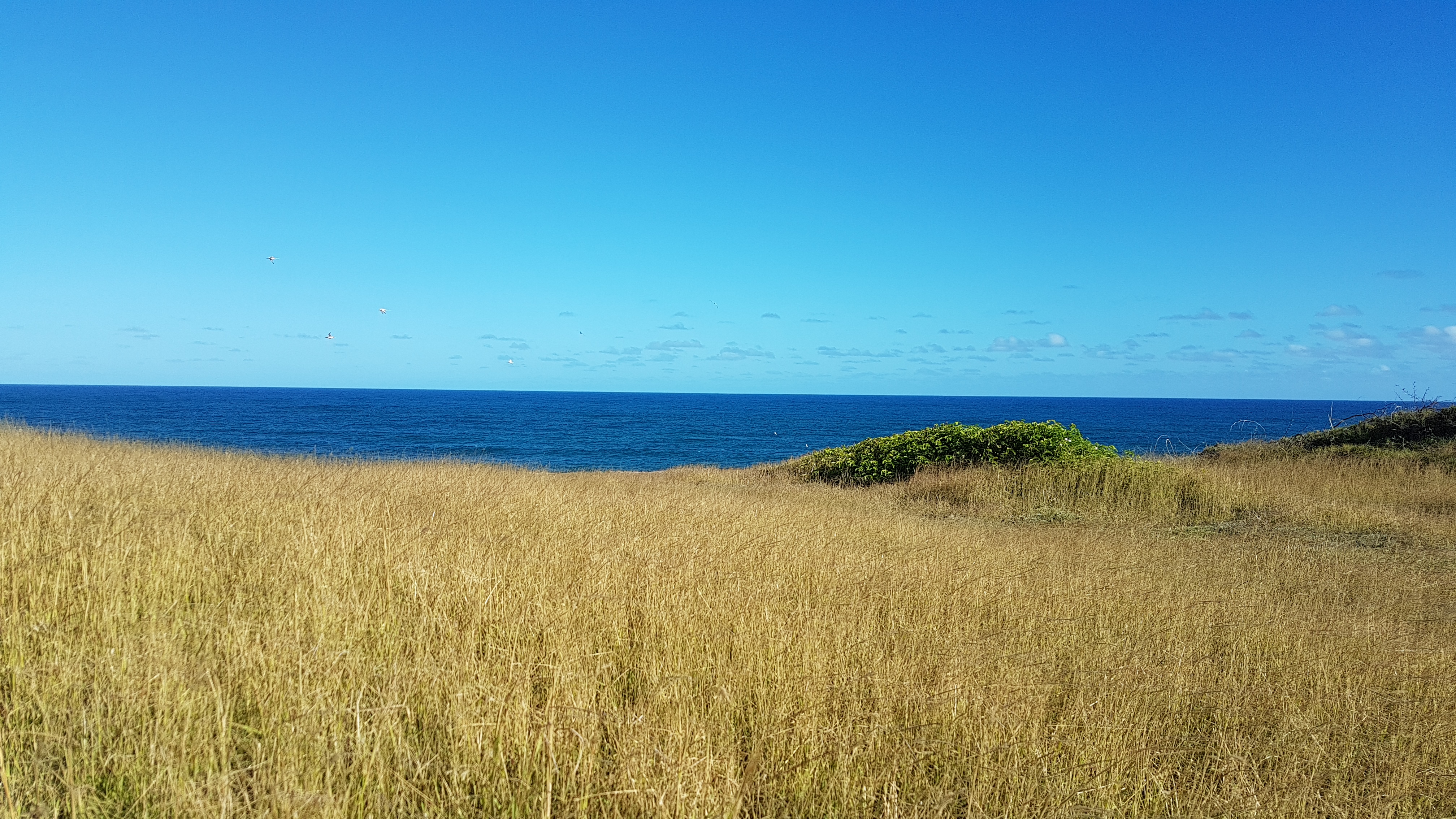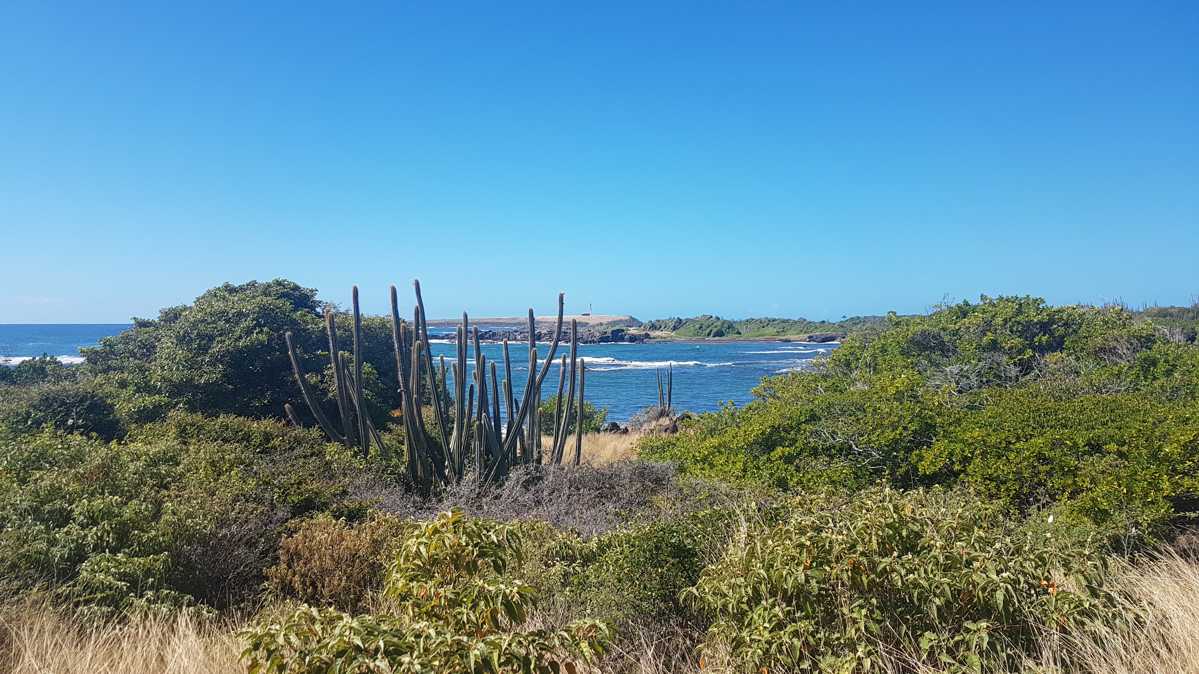 Encore une belle randonnée, plus physique néanmoins que la Savane des Pétrifications. L’œil bleu est la continuité de la randonnée précédente, elle suit la Trace des caps. Située plus au nord, on accède au départ par le Cap Macré. Ce n’est pas très bien indiqué mais lorsque vous trouvez enfin un panneau indiquant le début de la randonnée Trace des caps, garez-vous, c’est ici. Suivez ensuite le chemin et les panneaux indiquant le Cap Ferré. Lorsque vous apercevez une petite péninsule de roche, votre objectif n’est plus très loin car l’œil se situe tout au bout de ce bras 🙂