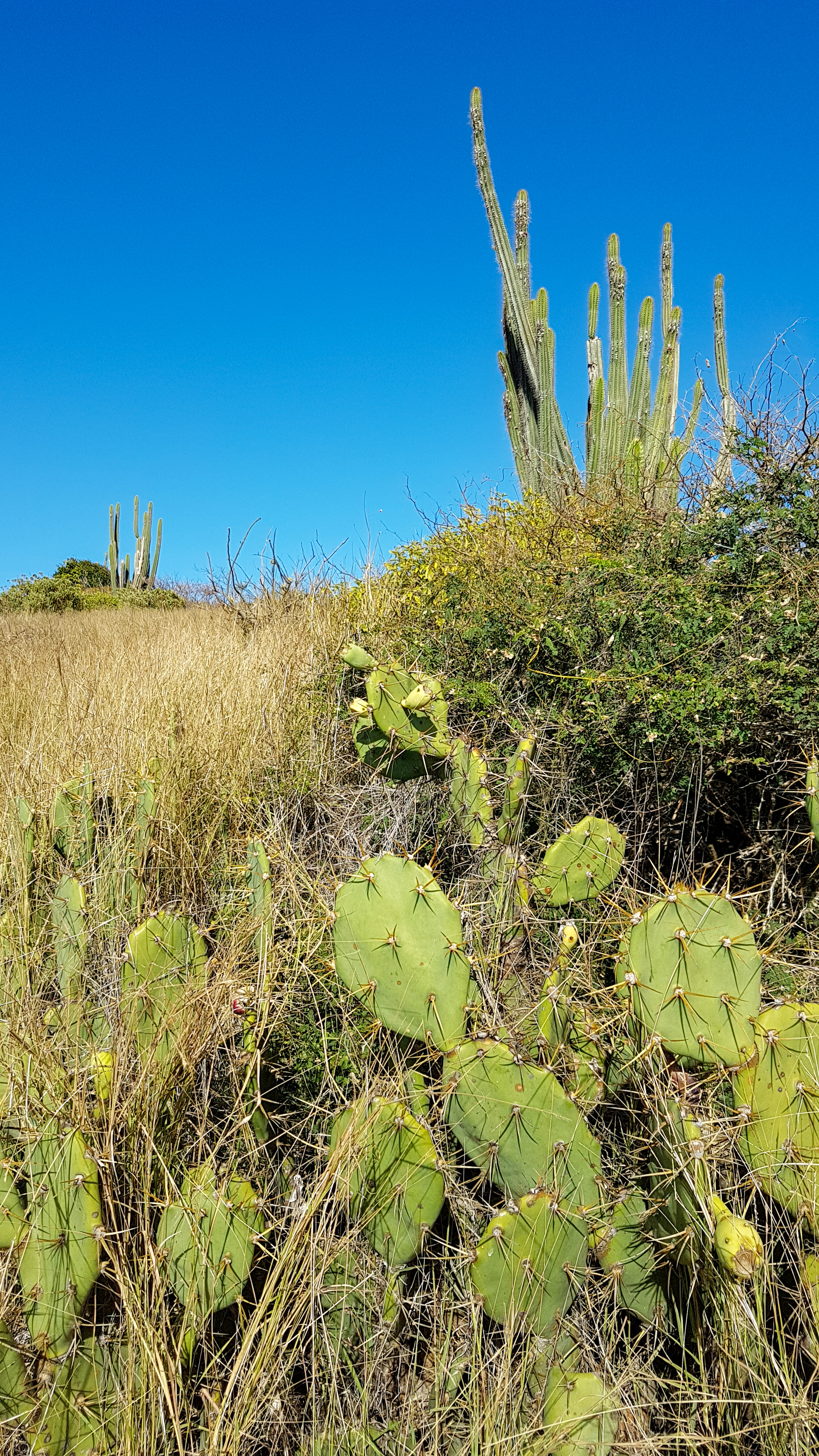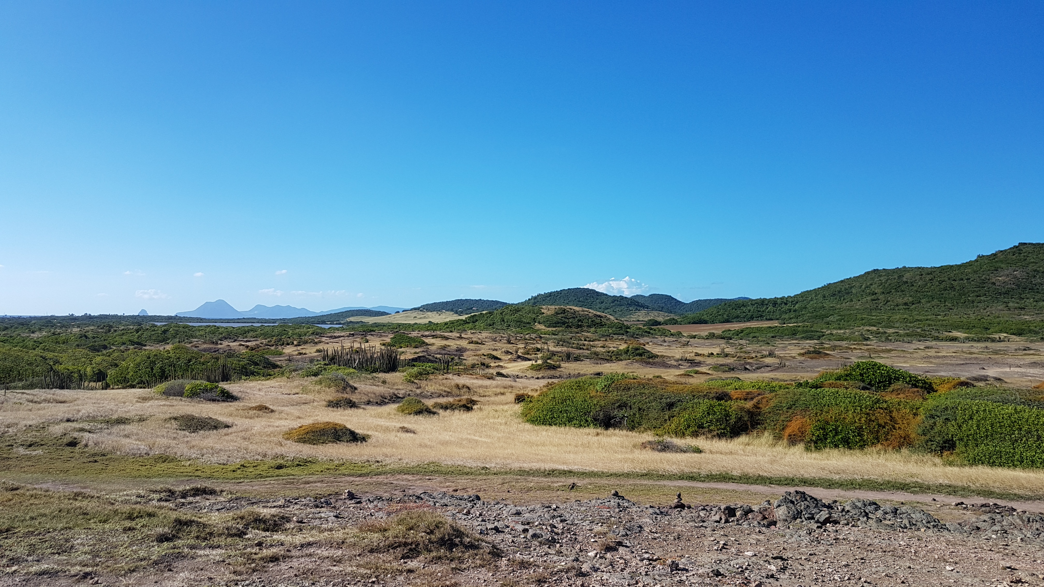 Maintenant qu’on est bien rafraichi par l’océan, allons découvrir les paysages terrestres de la Martinique. Réputée pour sa végétation luxuriante, l’île aux fleurs nous réserve cependant d’étonnantes surprises. La Savane des Pétrifications en est un excellent exemple. Cette randonnée démarre à la pointe la plus au sud de l’île sur la Presqu’île de Saint-Anne. Elle longe ensuite la côte atlantique jusqu’à la plage de l’Anse Trabaud. Si je vous en parle c’est parce que cette balade offre un cadre incroyable et bien différent de ce que l’on s’imagine en venant aux Antilles. Ici, on évolue sur une terre sèche et volcanique, tantôt dans une plaine où l’on s’attend à voir surgir des antilopes, tantôt dans un désert rempli de cactus qui nous transporte au beau milieu de l’Arizona. Et comme si cela ne suffisait pas, on peut admirer les vagues se fracasser sur les falaises noires ! J’ai vraiment beaucoup aimé marcher dans ce décor magnifique.