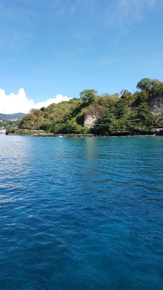 Départ du catamaran depuis l’Anse Mitan à 9h. Nous traversons la baie de Fort-de-France jusqu’à la baie de Saint-Pierre pour un premier arrêt. Sur le chemin, nous croisons de loin un banc d’orques pygmées, très rarement observé. C’est une chance. Lorsque toutes les conditions sont réunies, il est parfois possible d’observer des baleines, des cachalots, des dauphins ou encore des épaulards (l’orque dans Sauver Willy). Après une baignade rafraichissante, et un bon repas, nous allons faire du snorkeling à fond Giromont, aux pieds des falaises. Le lieu est magnifique, une cavité dans la roche sert de repère aux chauve-souris ! La découverte sous-marine est fabuleuse, il y a plein de poissons colorés, des coraux et des gorgones à foison 🙂