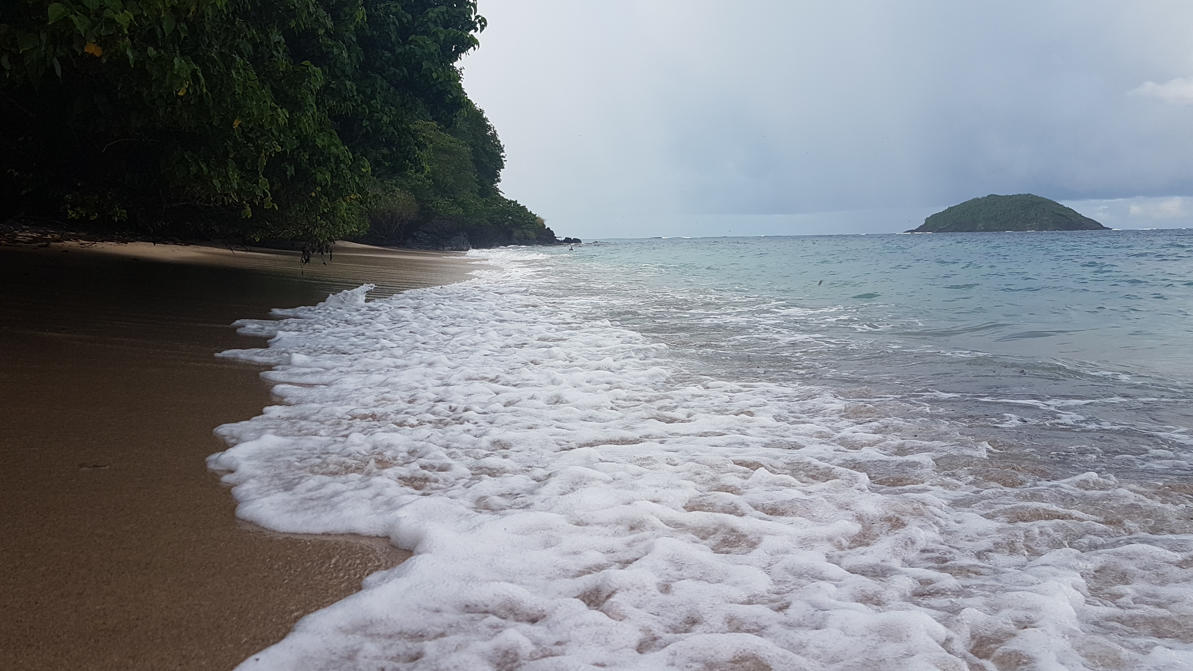 Depuis la plage on peut profiter de la vue sur la presqu’île de La Caravelle. Nous n’y sommes allés qu’une seule fois, mais la baignade était agréable. L’eau est agitée, mais il est possible de nager.