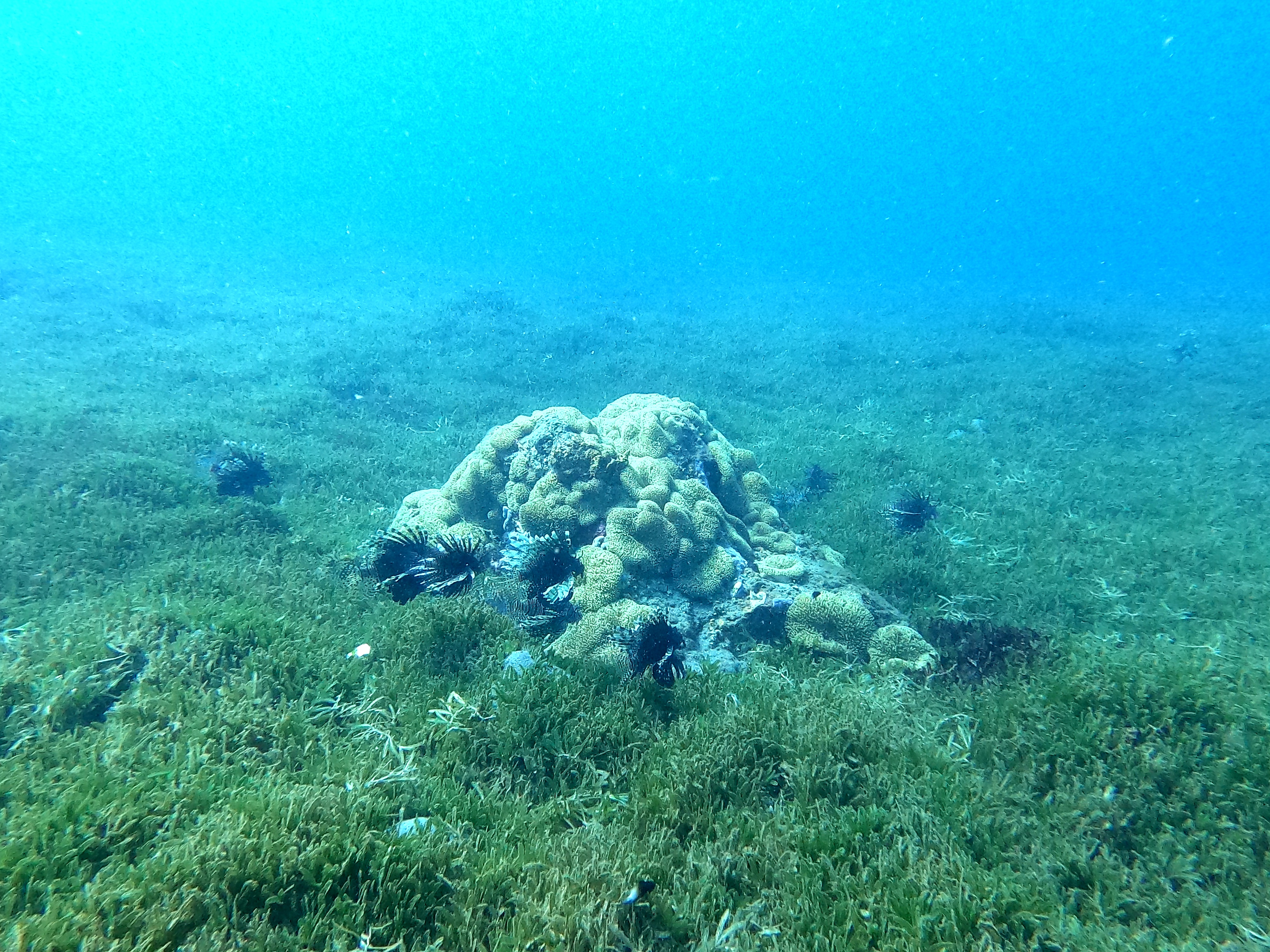 Site : à gauche ou à droite de la plage, des rochers offrent un abri aux labres, sergent-major, écrevisses, poulpes et les coraux prolifèrent. Pour rejoindre un côté ou un autre, une bande de sable constitue l’endroit idéal pour les raies, les soles et même les tortues. Si l’on est équipé d’une bouée de signalisation et de bonnes palmes, il y a plus au large un gros rocher à 10 mètres de profondeur abritant une impressionnante colonie/nurserie de poissons-lions.